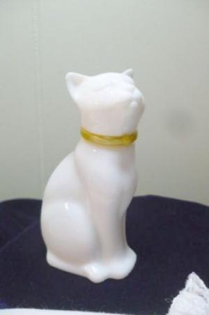WHITE CAT MILK GLASS PERFUME BOTTLE AVON TIMELESS     Completed    $4.99