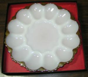 vintage white milk glass egg tray with gold trim     Completed    $4.99