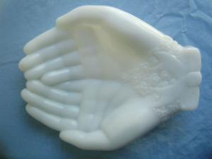 AVON MILK GLASS OPEN HANDS TRINKET TRAY/SOAP DISH     Completed    $4.99