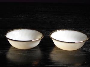 2 FIRE KING MILK GLASS FRUIT BOWLS WITH GOLD RIM     Completed    $4.99