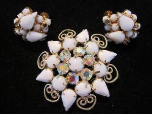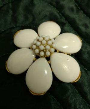 Vintage Selini Milk Glass White Flower Pin     Completed    $4.99