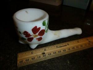 Milk glass toothpick holder shaped like a pipe     Completed    $4.99