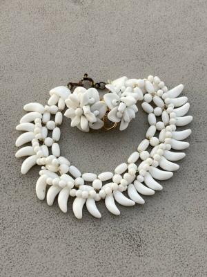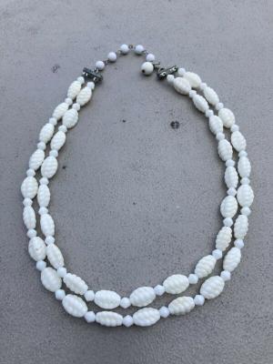Vintage Milk Glass Carved Beaded Strand Necklace!     Completed    $4.99