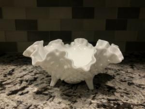 Milk Glass Console Ruffle Bowl 8”x8”x3”     Completed    $4.99