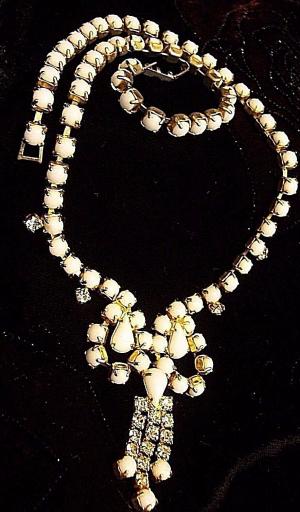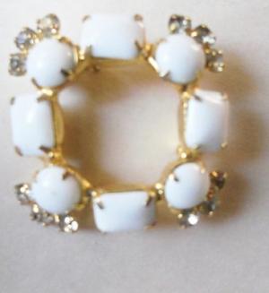 WHITE MILK GLASS CLEAR RHINESTONE BROOCH..32     Completed    $4.98