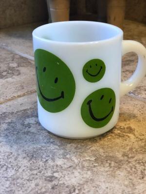 Vintage Milkglass Green Smile Face Coffee Tea Mug     Completed    $4.98