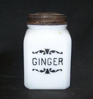Vintage White Milk Glass Spice Jar Labeled Ginger     Completed    $4.99