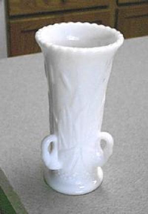 UNUSUAL MILK GLASS SWAN AND CATTAIL PATTERN VASE     Completed    $4.95