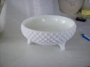 VINTAGE WHITE MILK GLASS HOBNAIL VASE DISH - NR     Completed    $4.95