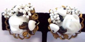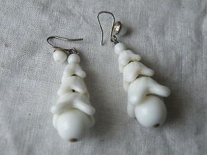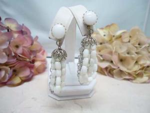 VINTAGE WHITE (MILK) GLASS DANGLY BEAD EARRINGS     Completed    $4.56