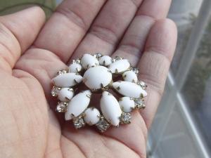 Vtg MILK GLASS RHINESTONE Brooch     Completed    $4.52