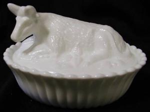 " Westmoreland " Milk Glass Cow on Ribbed Base     Completed    $4.58