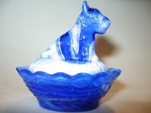 Excellent Blue striped Slag Milk Glass Ashtray     Completed    $4.5