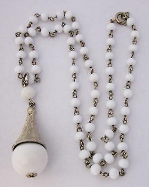 Vintage Milk Glass Bead Pendant Necklace     Completed    $4.56
