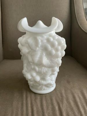 Milk Glass Grapes Ornate Fluted Vase     Completed    $4.6