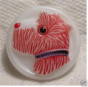WHITE MILK GLASS BUTTON w/RED ENAMELED SCOTTY DOG     Completed    $4.34