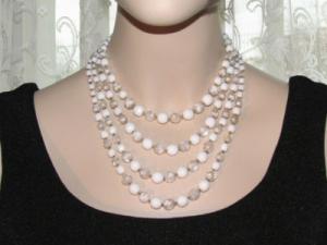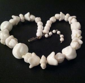 Vintage 1960's Hand knotted Milk Glass Necklace     Completed    $4.33