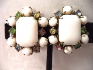 Vintage Aurora Borealis AB Milk Glass Earrings     Completed    $4.34