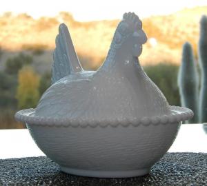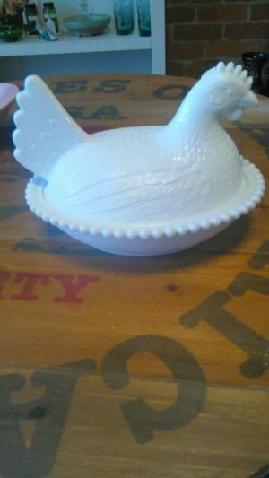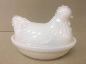 Vintage Milk Glass Hen On Nest Covered Candy Dish     Completed    $4.25