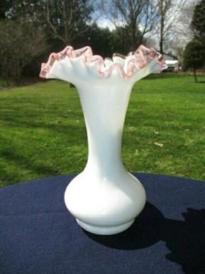 FENTON MILK GLASS BULB VASE PINK ROSE CREST 8"     Completed    $4.25