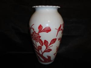 Vintage Milk Glass Vase With Red Floral & Birds     Completed    $3.99