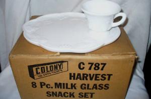 VINTAGE MILK GLASS COLONY HARVEST SNACK SET OF 4     Completed    $3.99