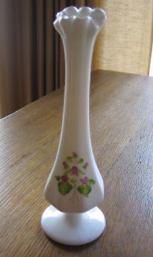 FENTON MILK GLASS BUD VASE - HANDPAIINTED VIOLETS     Completed    $3.99