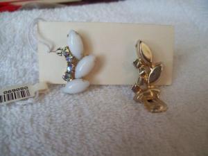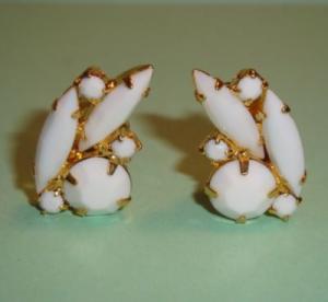 Unsigned Goldtone/Milkglass? Rhinestone Clip-Ons     Completed    $3.99