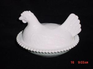 Milk Glass Nesting Chicken on a Basket     Completed    $3.99