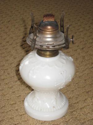 VINTAGE MILK GLASS MINIATURE OIL LAMP     Completed    $3.99