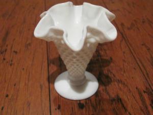 Fenton Hobnail Milk Glass Vase Ruffled Rim     Completed    $3.99