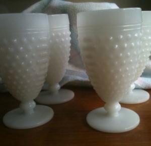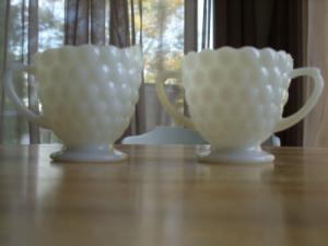 4 White Hobnail Milkglass Cups, Glasses, Mugs     Completed    $3.99