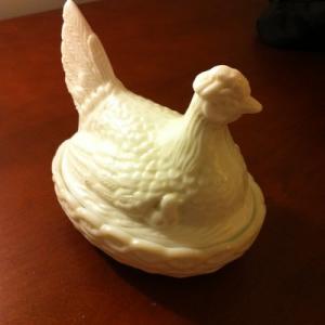 Milk Glass Chicken Candy Dish     Completed    $3.99