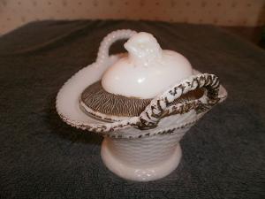 Vintage White Milk Glass Basket With Chicken Lid     Completed    $3.99
