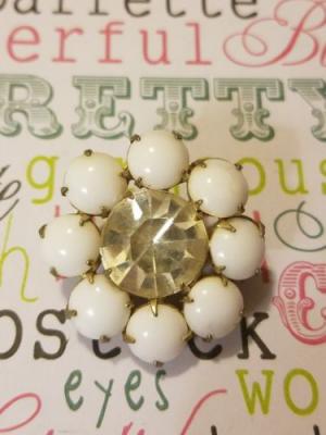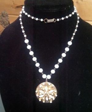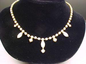 Vintage Goldtone Milk Glass & Rhinestone Necklace     Completed    $3.99