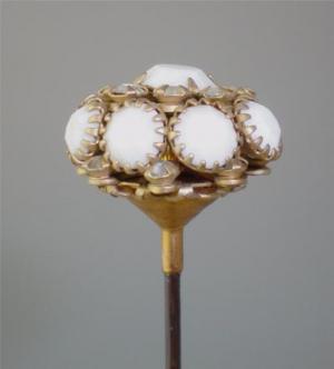 SUPERB CRYSTAL AND MILK GLASS HATPIN     Completed    $3.99