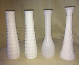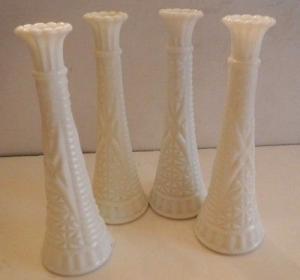 LOT OF 4 VINTAGE MILK GLASS BUD VASES     Completed    $3.99