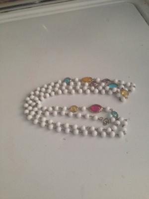 VINTAGE 50'S WHITE MILK GLASS NECKLACE 16IN     Completed    $3.99