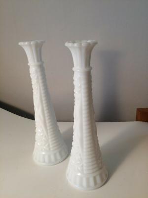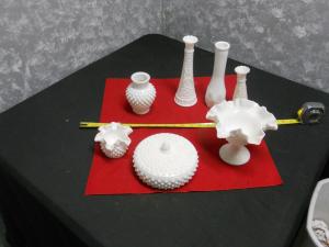 Lot of 7 White Milk Glass Vases & Candy Dish     Completed    $3.99