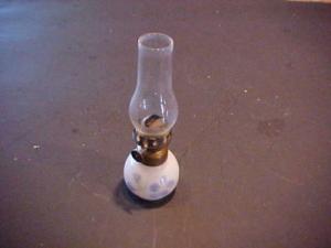 SMALL KEROSENE MILK GLASS LAMP--NEW CHIMNEY     Completed    $3.49