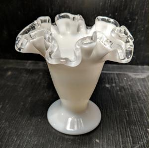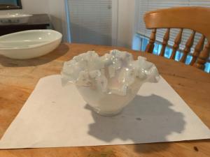 fenton iridescent milk glass ruffled edge      Completed    $3.5