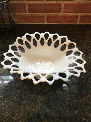 WESTMORELAND MILK GLASS OPEN LACE OVAL DISH     Completed    $3.49