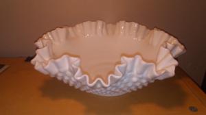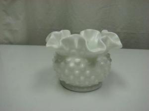 VINTAGE FENTON HOBNAIL MILK GLASS RUFFLED BOWL     Completed    $3.25