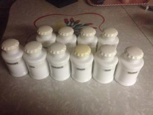 Ten Vintage Spice Jars Milk Glass 4 Inches Tall     Completed    $3.25