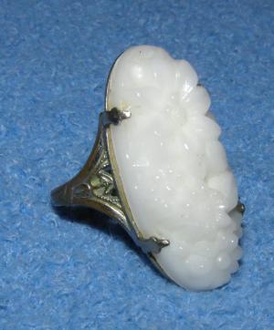 Large Signed Crown Trifari Brooch - Milk Glass     Completed    $3.25