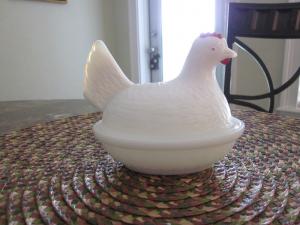 MILK GLASS CHICKEN ON A NEST     Completed    $3.25