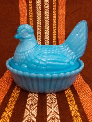 WESTMORELAND Hen On Nest Blue Milk Glass     Completed    $3.25