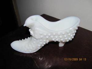 Fenton White Milk Glass Hobnail Cat Slipper Shoe     Completed    $3.24