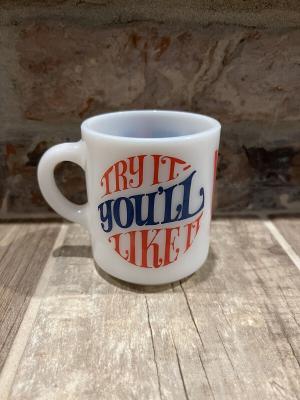 White Milk Glass Tiki Mug - Happy Sad Faces     Completed    $3.24
