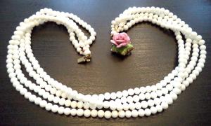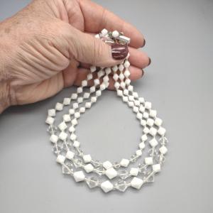 Vintage Triple Strand Milk Glass Bead Necklace     Completed    $3.24
